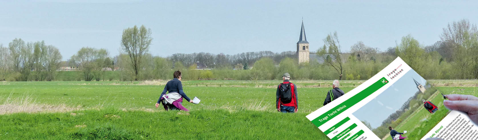 - Typ op de homepage van Wandelzoekpagina bij ‘Waar wil je wandelen’ Trage Tocht met de plaatsnaam in.